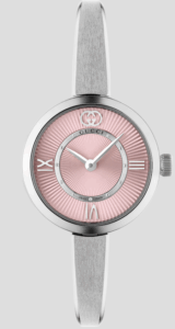 Tras lanzamientos anteriores, la colección Modelo 2000 añade dos modelos de acero de 24 mm con un diseño de brazalete refinado y femenino. Manteniéndose fiel a la estética original a la vez que introduce una construcción elegante, un modelo se presenta con una esfera guilloché rosa suave con detalles de acero, mientras que el otro muestra una esfera plateada resaltada por un anillo interior y agujas en oro rosa. Cada reloj se completa con índices en números romanos a las 3, 6 y 9 en punto, una franja de resina en la caja y el motivo de la característica G entrelazada a las 12 en punto. Ambos modelos incluyen brazaletes de acero diseñados con un sistema de pulsación integrado para facilitar la apertura y el cierre.