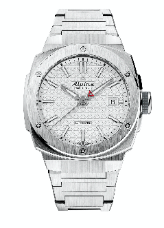 El reloj ostenta unos acabados que acentúan la presencia de titanio. Como ya es habitual en la colección, la esfera, en un elegante tono gris claro, se ha grabado con el motivo triangular que simboliza las cumbres de los Alpes, de las que la marca toma su nombre. Los 12 índices colocados en aplique, con facetas pulidas de nácar negro y tratamiento luminiscente, realzan la profundidad arquitectónica de la esfera. Por su parte, el contrapeso rojo del segundero añade un toque de viveza al conjunto. En el interior del reloj late el calibre automático AL525, que asegura 38 horas de reserva de marcha y ofrece horas, minutos, segundero central y fecha. El “Alpiner Extreme Automatic Titanium” se presenta con brazalete integrado de titanio, de forma idéntica a la del característico brazalete de la colección “Alpiner”, tradicionalmente realizado en acero, así como con similares acabados (satinado cepillado vertical que refleja el del bisel, de tal manera que todos los elementos externos se combinan a la perfección).
