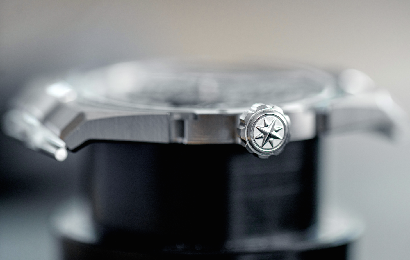 Manteniendo su estética depurada y su estilo sport-chic, el “Alpine Eagle 41 XP TT” se ha elaborado íntegramente en titanio de grado 5. De un tono ligeramente más oscuro que el acero, este metal subraya un poco más la identidad deportiva y robusta de la colección, aportando, al mismo tiempo, tal ligereza que da la impresión de que el reloj no se lleva en la muñeca. Las propiedades del titanio grado 5, combinado con una aleación de aluminio y vanadio consiguen que el reloj sea especialmente resistente a la corrosión y al agua salada, con lo que resulta especialmente adecuado para los entusiastas de los deportes extremos.