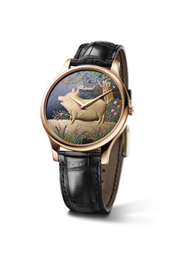 Chopard añade una pieza excepcional a su preciosa colección de relojes L.U.C Urushi que todos los años rinde homenaje a uno de los doce signos del zodíaco. El ancestral arte japonés del Urushi ha sido convocado para realizar un reloj sobre el tema del Año del Cerdo del calendario tradicional chino. Generoso, perspicaz y frívolo, el animal presta su rostro jovial a una creación de extraordinaria elegancia animada por un calibre L.U.C extrafino, el movimiento 96.17-L