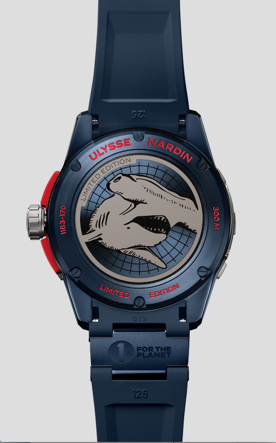 Desde su fundación en 1846, la firma relojera suiza independiente Ulysse Nardin ha estado anclada en alta mar. Decenas de marinas de todo el mundo confiaron en sus cronómetros marinos para proporcionar una ayuda esencial a la navegación y la reputación de la Maison por su suprema precisión mecánica se extendió por todos los continentes. Casi 180 años después, Ulysse Nardin sigue siendo un pionero de los relojes mecánicos de precisión. Ahora, Ulysse Nardin vuelve al agua con el Diver [HAMMERHEAD SHARK], un reloj musculoso y de alto rendimiento que captura tanto el enfoque disruptivo de la manufactura hacia la Alta Relojería como su continuo compromiso con la conservación de los océanos. El reloj de Ulysse Nardin ha sido creado para contar la historia de la conservación de los tiburones y recaudar fondos para organizaciones sin ánimo de lucro dedicadas a la protección de estas especies. Las ediciones anteriores rindieron homenaje al Gran Tiburón Blanco, al Tiburón Limón y al Tiburón Azul.