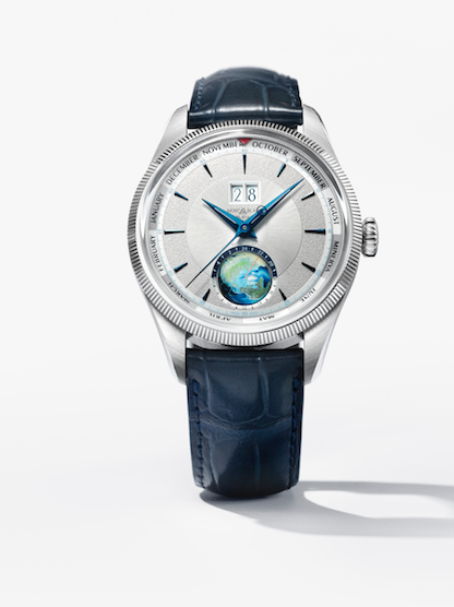 El elemento visual protagonista de estos relojes es el globo giratorio tridimensional pintado a mano que presenta el hemisferio norte y una indicación de día y noche. El globo también índica la línea del meridiano de Greenwich mediante una raya naranja y una escala de 24 horas. Cada globo, realizado en cristal de zafiro, está pintado a mano en la parte inferior por un artesano suizo, que dedica cuatro horas por pieza a este meticuloso trabajo. Los globos en estos dos nuevos modelos representan el hemisferio norte. El hemisferio sur está disponible por encargo.