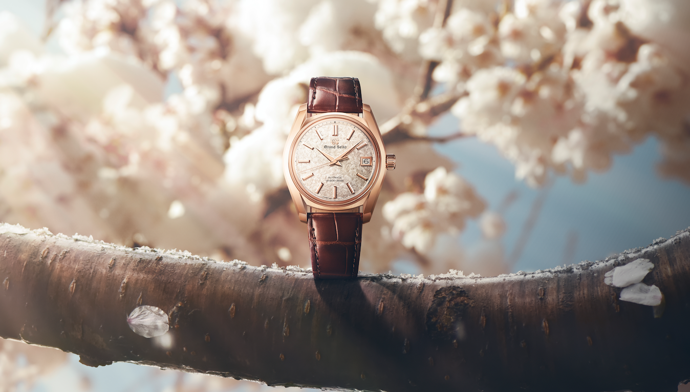 Grand Seiko presenta su primera reinterpretación del 62GS en oro rosa de 38 mm como modelo regular y no limitado dentro de la Heritage Collection. Fiel al concepto "Nature of Time", esta nueva creación Hi-Beat se inspira en la delicadeza de los cerezos en flor.