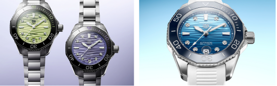 Esta temporada, la colección "Aquaracer" de Tag Heuer se amplía con cinco nuevas y refrescantes referencias, cuyos colores se inspiran en las vivas tonalidades de los arrecifes de coral, las múltiples tonalidades del mar o las cautivadoras y misteriosas profundidades oceánicas.
