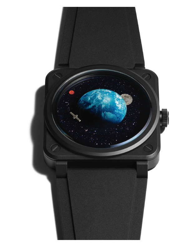 «La Cúpula, la bóveda de observación de la Estación Espacial Internacional (ISS) inspiró este reloj, que actúa como una especie de ojo de buey que se abre a los planetas. Imaginé la Tierra vista desde el espacio en alineación simbólica con la Luna y Marte. La magia de este reloj reside en su visualización, no como una interpretación técnica de un reloj instrumento, sino, por una vez, en una dimensión imaginativa», explica Bruno Belamich, Director Creativo y Cofundador de Bell & Ross.
