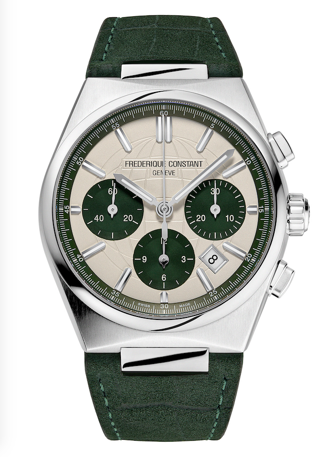 Con ocasión del 25 aniversario de su colección insignia, Frederique Constant propone nuevas versiones de su modelo deportivo, el Cronógrafo Automático de 41 mm. Dos modelos que inauguran enfoques muy complementarios: una primera versión no limitada con caja chapada en oro rosa y esfera azul medianoche, una combinación muy elegante; y, en paralelo, una versión limitada a 1.888 piezas en una caja de acero que ofrece la combinación única de una esfera opalina con contadores verdes, con un espíritu deportivo y contemporáneo. Como es habitual, cada pieza, equipada con el calibre FC-391 con una reserva de marcha de 60 horas, viene con varios brazaletes intercambiables (dos y tres, respectivamente).
