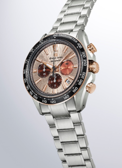 La "Evolution 9 Collection" fue la primera en dar la bienvenida al único cronógrafo mecánico de Grand Seiko: calibre 9SC5, el Tentagraph. Rindiendo homenaje a la naturaleza que rodea su lugar de origen, esta nueva creación lleva la fusión del espíritu de Grand Seiko con las sensibilidades estéticas de Japón a un nivel superior, combinando el cálido dial de tono cobre-rosado con los acentos de oro rosa del estuche, evocando un amanecer en la cima.
