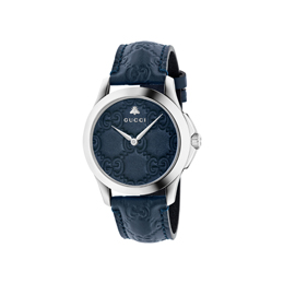 Los modelos “G-Timeless Gucci Signaure” se presentan combinados con una amplia gama de correas de piel “Gucci Signature”, una piel que también se ha empleado para la realización de las esferas. Se trata de unas piezas que capitalizan el éxito de otras líneas de producto, que también emplean esta piel. Están disponibles en dos tamaños -38 y 27 mm-, con caja de PVD de oro amarillo o con caja de acero.