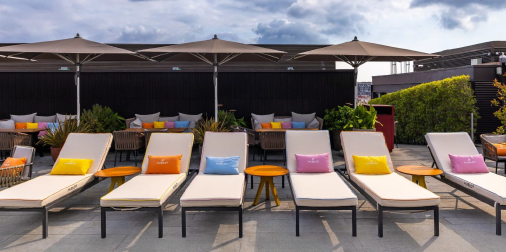 Hublot conquista el cielo de la ciudad con Terrat by Hublot, la nueva experiencia en la azotea de Mandarin Oriental, Barcelona. Con unas vistas inigualables de Barcelona, la icónica azotea ha sido transformada por la manufactura relojera suiza en un espacio exclusivo y vibrante, decorado en tonos amarillo, naranja, rosa y azul que evocan los cálidos atardeceres mediterráneos. Un ambiente que invita a soñar, donde el sol parece se funde con las olas del mar infinito. Gracias a su ubicación privilegiada en el punto más alto de la zona, el lugar goza de una temperatura muy agradable que le confiere un atractivo plus a la experiencia. Los visitantes podrán sumergirse en el espíritu mediterráneo de Hublot en un entorno completamente personalizado: durante el día los clientes alojados pueden relajarse en cómodas tumbonas junto a la piscina y tomar el sol con un cóctel exclusivo de la manufactura. Además, los visitantes externos también son bienvenidos a disfrutar de un menú mediterráneo ligero. Al caer el sol, la terraza se transforma en un vibrante restaurante con DJ en vivo que anima el ambiente hasta la madrugada.