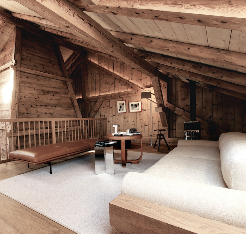Situado a 1360 metros de altitud, en la ladera occidental del Mont Tendre, Le Chalet es un chalé de montaña del siglo XIX que ha sido restaurado. Actualmente es propiedad del municipio de Le Chenit, pero en su día perteneció a un granjero del valle que en verano trasladaba su ganado a las altas praderas (alpages en francés). Este lugar mágico, conocido como «Les Chaumilles», diminutivo de la palabra dialectal local chaux o pequeña zona de pastoreo, domina Le Sentier y el lago de Joux. Rodeado de un antiguo prado salpicado de lapiaz —fisuras esculpidas por la lluvia en las rocas calizas subyacentes— y en medio de un bosque de pinos vírgenes, Le Chalet representa un ritmo de vida completamente tradicional que apenas ha cambiado desde que los primeros granjeros llevaban sus rebaños por el valle para que pastaran en los exuberantes pastos de verano. Según la tradición, las vacas se ordeñaban in situ y el queso se elaboraba allí mismo. Como todas las construcciones del Jura, Le Chalet comprendía originalmente un establo, un granero y una quesería. Respetando su legado, con gran parte de la madera original cuidadosamente limpiada y restaurada, así como complementada con tablones adicionales, el granero principal de planta abierta se utilizará como espacio para comer y recibir invitados, con vistas a un acogedor salón en el entresuelo. La decoración, sencilla pero sofisticada, resalta la belleza del espacio. En su corazón se encuentra el thuyé, la chimenea tradicional en forma de pirámide situada sobre el caldero caliente donde se cuajaba la leche fresca para convertirla en queso, cuya madera antigua se ha conservado y restaurado con gran esmero. La antigua sala de ordeño del chalé, que se utilizaba para secar el queso recién hecho, se ha convertido en una cocina donde un chef preparará menús especiales para los invitados, centrándose en recetas tradicionales e ingredientes de temporada del valle, especialmente quesos como el Vacherin local. Las fachadas de Le Chalet, orientadas al noreste y suroeste, están revestidas con el tavaillon (tejas de madera) utilizado en las construcciones tradicionales del Vallée de Joux para protegerlas del duro clima invernal y los fuertes vientos. El corte y la colocación a mano de las tejas es una habilidad ancestral desarrollada en el Jura suizo en el siglo XV y transmitida de generación en generación. En un notable esfuerzo por preservar este patrimonio, los artesanos locales sustituyeron por completo los antiguos tavaillons por otros nuevos, elaborados con madera procedente del bosque que los rodea.
