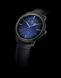 En su interior, el reloj late al ritmo del calibre automático GP3300, con puentes y platina finamente estirados, achaflanados, grabados y decorados con Côtes de Genève.