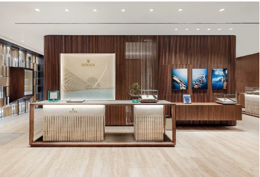 Rabat reabre su emblemática tienda en Valencia con una distinguida estética que evoca la calidez de las playas y la serenidad de su costa, a partir de una ampliación del espacio dividido en dos plantas. Elegancia y diseño se fusionan para ofrecer una experiencia única y envolvente, inspirada en la esencia del mediterráneo. Situada en la Calle Colón 39, Rabat está presente en la capital de la Comunidad Valenciana desde 2006. Ofreciendo un entorno amplio y sofisticado para descubrir el universo Rabat, la planta baja, con 750m², acoge todas las colecciones y piezas icónicas de la firma en un ambiente elegante donde cada detalle está diseñado para realzar la belleza y el brillo de cada joya. El espacio reúne creaciones de alta joyería Rabat y las últimas novedades de las firmas relojeras más prestigiosas a nivel internacional, ofreciendo a los clientes la oportunidad de descubrir piezas únicas en un entorno lleno de encanto. Por su parte, la planta primera, con 100m², está dedicada al taller, donde expertos artesanos trabajan con precisión y dedicación, ofreciendo servicios de mantenimiento, restauración y personalización para asegurar que cada pieza conserve su esencia y esplendor. Este taller refuerza el compromiso de Rabat con la excelencia artesanal, brindando un servicio que garantiza la máxima calidad y cuidado de sus joyas y relojes. La Boutique incluye un amplio y renovado espacio Rolex de 132m², con entrada propia y un especial cuidado en los detalles de diseño. El espacio, amueblado y decorado con conceptos de diseño interior creados por Rolex, es un entorno ideal para experimentar el mundo de Rolex. Sus materiales de calidad como la madera de nogal, el travertino o los terciopelos verdes, combinan a la perfección creando un ambiente acogedor y elegante. El espacio se compone de diferentes ambientes en el que se distribuyen mesas de venta, un salón privado y varias mesas altas en los que se exponen una cuidada selección de relojes, desde modelos profesionales hasta clásicos, mostrando los relojes más icónicos de Rolex.
