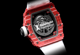 Uno de los detalles distintivos de este reloj es el grabado que decora el fondo: el logo de la Fundación Rafael Nadal. Richard Mille ha colaborado con la organización en diversas ocasiones y esta vez destinará los beneficios de las ventas del reloj a la Fundación Rafael Nadal.