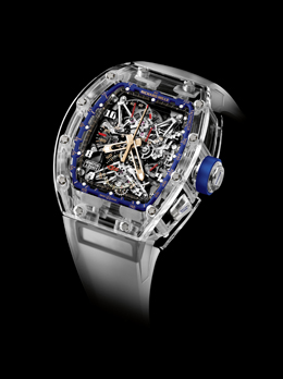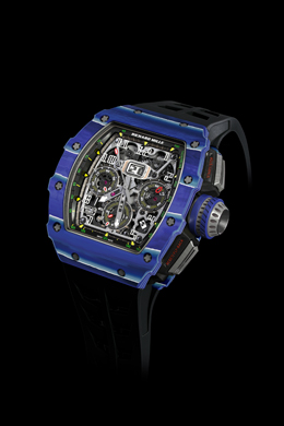 El cuarzo TPT™ también sea empleado para la elaboración de la caja del “RM 050 Jean Todt 50 Anniversary”. Su calibre alberga un cronógrafo con ratrapante regulado por un tourbillon. La esqueletización extrema de los puentes y al platina junto con el uso del titanio y las nanofibras de carbono han hecho posible obtener un movimiento particularmente ligero, de solo 9,5 g de peso y un rendimiento asombroso.