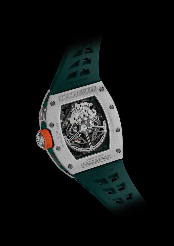 Richard Mille ha desarrollado relojes específicos en honor de cada edición de Le Mans Classic desde 2008, culminando en un total de diez relojes de edición especial, cada uno de ellos con los colores representativos de Le Mans Classic: el verde y el blanco. La edición limitada de 150 piezas del RM 30-01 conmemora la 12ª edición de Le Mans Classic en 2025 y mantiene su característica distintiva, presentando una caja compuesta por biseles de titanio que enmarcan un cuerpo de Green Quartz TPT®. Los acentos en verde y naranja en el interior, la icónica bandera a cuadros que enmarca la ventana de fecha de gran tamaño, el famoso logotipo de Le Mans Classic en el fondo de zafiro y la correa de caucho verde con ventilación deportiva son los elementos que complementan este nuevo reloj que rinde homenaje a un evento tan querido por la marca.