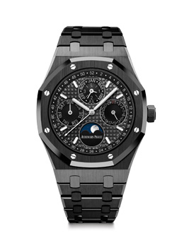 La complicación de calendario perpetuo está fuertemente enraizada en el universo de Audemars Piguet, desde los mismos orígenes de la manufactura. De hecho, en el año 1955, la firma presentó como primicia mundial un calendario perpetuo de pulsera, que incluía la indicación del año bisiesto. Ahora, Audemars Piguet enriquece su colección con un calendario perpetuo “Royal Oak”, en versión full black, realizado en cerámica negra acabada a mano. Está equipado con el gran calibre automático 5134, visible a través del fondo transparente.