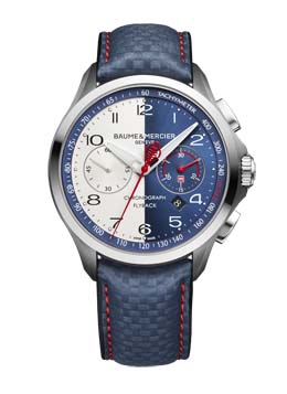 Como homenaje al mítico bólido Shelby Cobra Daytona Coupe, Baume & Mercier presenta un cronógrafo excepcional. Se ofrece equipado con el calibre automático La Joux-Perret 8147-2, con función flyback. Su caja es de titanio, de 44 mm de diámetro. Su correa es de piel, de color azul, y reproduce un diseño inspirado en la fibra de carbono. En reconocimiento al récord de velocidad que este coche alcanzó en 1964, el reloj “Shelby® Cobra” se ofrece en una edición limitada de tan solo 169 piezas.