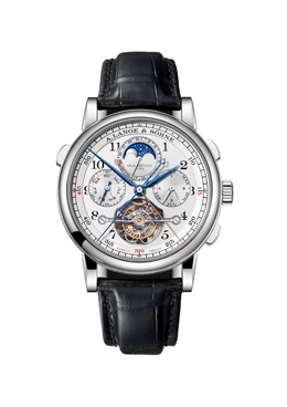 La quinta obra maestra de la línea “Pour le Mérite” de A. Lange & Söhne combina el accionamiento por cadena y caracol con tourbillon, cronógrafo, ratrapante y calendario perpetuo. Para que no se produjeran conflictos mecánicos ni indeseadas pérdidas de energía, fue necesario ubicar el mecanismo del calendario perpetuo alrededor del tourbillon, con lo que solo quedaban a disposición dos tercios aproximadamente de la superficie del mecanismo, y por lo tanto fue necesaria una nueva construcción de la mecánica de base.