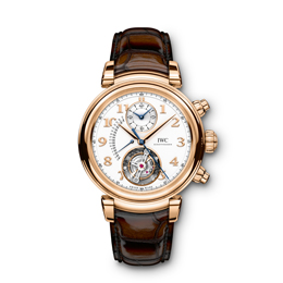 La manufactura de relojes de lujo suiza IWC Schaffhausen abre un vínculo con el emblemático código de diseño de los años 80 y presenta la colección “Da Vinci 2017” con su clásica forma de caja redonda. De las distintas piezas presentadas, destacamos el “Da Vinci Tourbillon Retrograde Cronógrafo”, una pieza excepcional que combina un tourbillon clásico con un cronógrafo y una fecha retrógrada en la misma esfera. Para coordinar estas tres complicaciones, los relojeros de la firma fabricaron el nuevo calibre automático 89900.