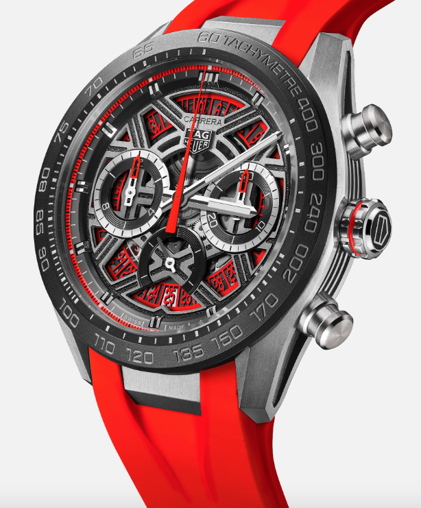 La colección “Carrera Extreme Sport” de 2024 se compone en total de seis modelos, y vuelve a poner de manifiesto el compromiso de la Manufactura con la innovación y la excelencia. Su estética combina tecnicidad y belleza en una caja que permite una mezcla de materiales sin fisuras, y que integra un contenedor y dos barriletes laterales. En el lateral, una estructura cóncava con acabado arenado aporta dinamismo y sofisticación, incidiendo en el carácter automovilístico del reloj. El elemento central de los nuevos relojes es, sin embargo, la característica esfera esqueletada, que ha sido convenientemente rediseñada para mejorar la legibilidad.