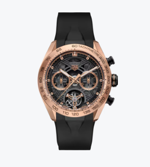 En cuanto al “TAG Heuer Carrera Chronograph Tourbillon Extreme Sport”, este reloj está disponible en dos versiones: un modelo completamente negro y una lujosa versión de oro. El reloj negro cuenta con bisel de carbono forjado con marcas grises.