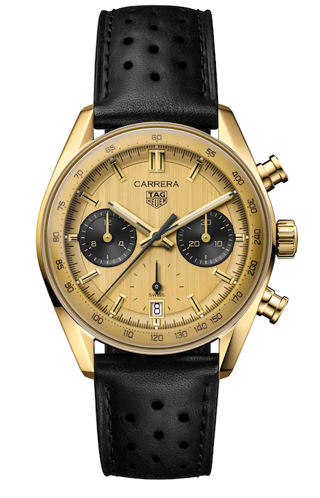 La celebración del 60 aniversario del reloj “Carrera” llega a su punto álgido con el lanzamiento del nuevo “TAG Heuer Carrera Chronograph” de caja dorada, definido por el innovador diseño Glassbox. Esta pieza excepcional captura la esencia de una colección creada para recompensar y acompañar a pilotos legendarios, compartiendo su pasión por el mundo del motor y por la búsqueda de la excelencia.