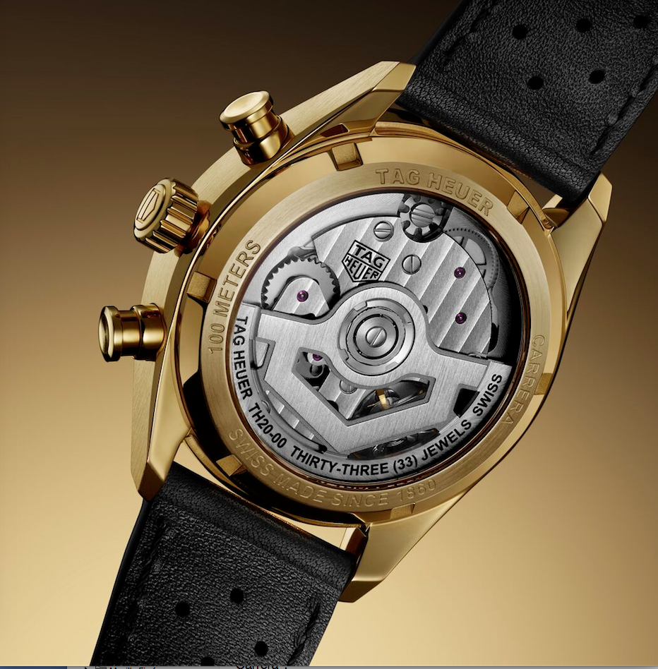 La elegante caja de 39 mm de diámetro del nuevo “TAG Heuer Carrera” está equipada con el movimiento de cronógrafo de manufactura TAG Heuer, calibre Heuer 02, catalogado como TH20-00. Se trata de un mecanismo de cuerda automática bidireccional que asegura una reserva de marcha de 80 horas.