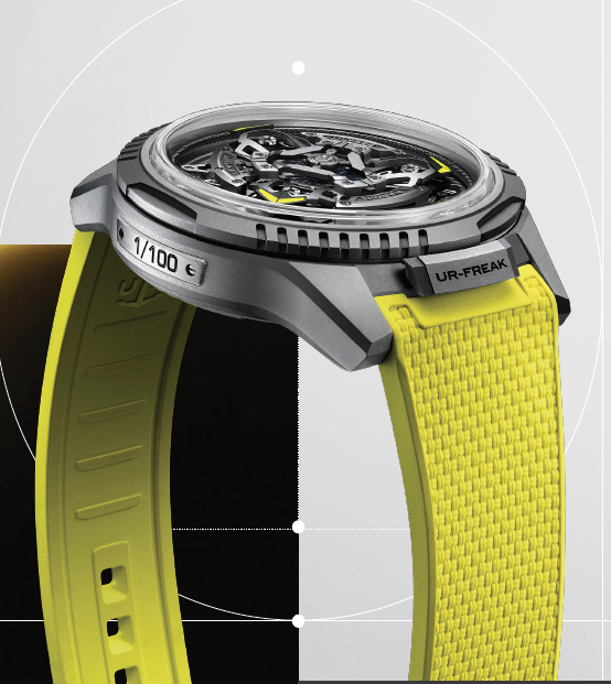 El UR-FREAK combina la destreza tecnológica y el rendimiento del reloj Freak más avanzado de Ulysse Nardin con el sistema de visualización «satelital» popularizado por el prestigioso relojero ginebrino URWERK. Aunque el UR-FREAK se lanza en 2025, su historia se remonta casi tres décadas atrás, al inicio de la era actual de los relojes de lujo modernos, maduros y muy codiciados. En un corto periodo de cuatro años, Felix Baumgartner y Martin Frei fundaron la marca URWERK (en 1997) y Ulysse Nardin lanzó el original reloj Freak (en 2001).