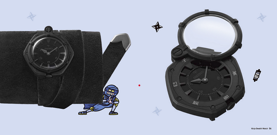 Ninja discreto. Concebido para el sigilo absoluto, este modelo permite consultar la hora sin mirarlo, únicamente a través del tacto, incluso en plena oscuridad. Inspirado en la figura del ninja, el diseñador Yuya Suganuma presenta un reloj que prescinde de cualquier elemento luminoso que pueda delatar su presencia. Su diseño evoluciona hacia una estética robusta y “tool-like”, integrando símbolos como el emblema del clan. Una pieza tan funcional como icónica.