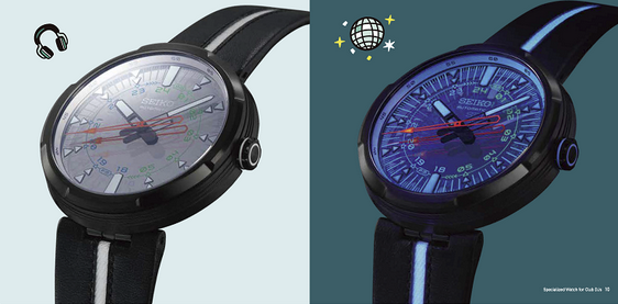 Para DJs de Club. Evocando la intensidad de la escena nocturna, este reloj convierte la muñeca en un escenario con un efecto “infinity mirror” de reflejos infinitos. La interacción de luces y colores crea una sensación envolvente, como entrar en otra dimensión. Pensado como el reloj ideal para DJs, refuerza su presencia en el escenario. Pese a su estética experimental, integra elementos de relojería mecánica tradicional en un contraste ideado por Kento Ito.