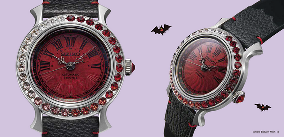 Exclusivo para Vampiros. Para quienes habitan la noche, este reloj redefine la forma de medir el tiempo. Concebido por Yu Ishihara, su esfera muestra solo las horas entre las 18:00 y las 6:00, junto a una aguja de 24 horas que evita confusiones entre día y noche. El bisel con piedras en degradado sugiere el tiempo transcurrido desde la última “alimentación”, mientras su estética inspirada en la Europa medieval aporta un aire de elegancia oscura y atemporal. Sofisticado y enigmático, revela su esencia vampírica en cada detalle.