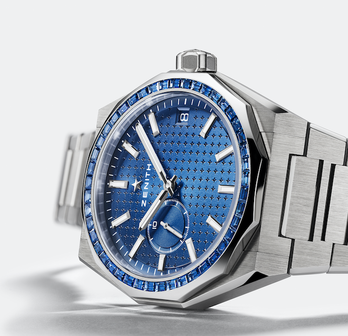 Caleb McLaughlin brilló con su "DEFY Skyline Sapphire", un impactante reloj de 41 mm que combina magistralmente la relojería de alto rendimiento con un refinado engaste de gemas. Fabricado en acero inoxidable con bisel dodecagonal, engastado con 45 zafiros azules de talla baguette, luce una esfera azul metalizada con efecto rayos de sol, adornada con el característico motivo de estrella de cuatro puntas de Zenith. Impulsado por el movimiento de alta frecuencia El Primero 3620, muestra las décimas de segundo a las 9 h, accionado directamente por el escape de 5 Hz. También incluye una ventana de fecha a las 3 h y ofrece una reserva de marcha de 60 horas. Con un brazalete de acero integrado con sistema de ajuste rápido, permite cambiar fácilmente el brazalete por una correa de caucho azul incluida. Combinando un diseño audaz, precisión mecánica y detalles brillantes, el "DEFY Skyline Sapphire" se erige como una encarnación contemporánea de la estética atemporal de ZENITH.